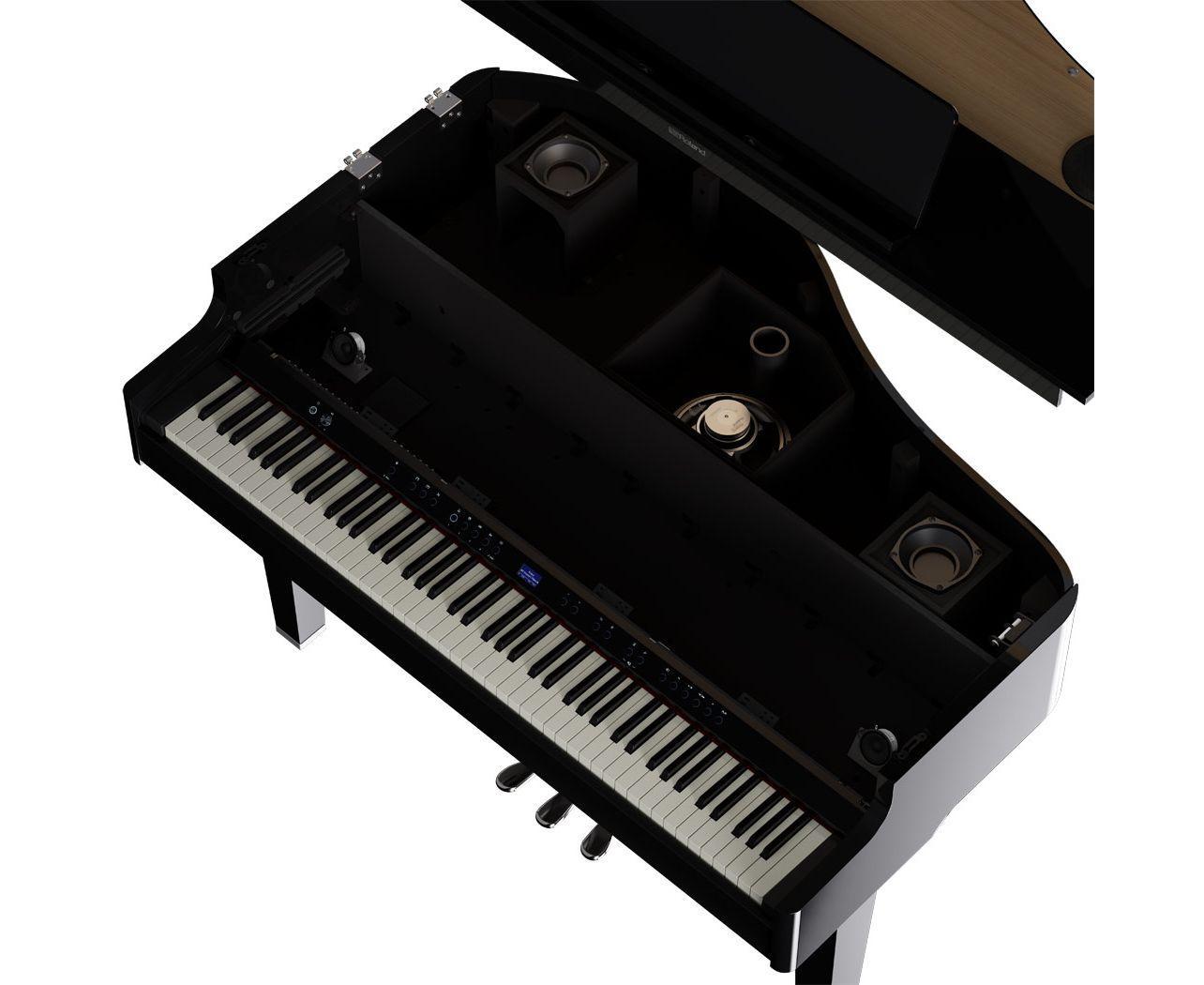 GP-6 построен на основе продвинутого подхода Roland Piano Reality, сложной экосистемы подключенных технологий, включающей звуковой движок, клавиатуру, педали, аудио компоненты и динамики. Каждая секция разработана таким образом, чтобы работать безупречно и прозрачно, позволяя игрокам ощутить чистоту этого замечательного инструмента с беспрецедентной экспрессией и реализмом.